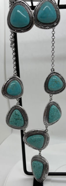 Beautifully crafted Silver and Turquoise Stone tear drop necklace and earring set
