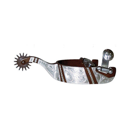 Antique Rock Grinder Training Spur – 7/8″ band with stainless steel hand engraved trim and rope.