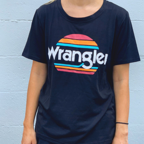 The Sunset T-shirt by Wrangler is in a vintage black colour way and features simple printed branding across the chest. This short sleeve staple crew is in a soft cotton fabric, ideal for day-long wear.